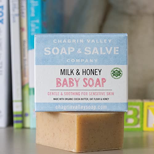 Chagrin Valley Soap & Salve Natural Organic Baby Soap – Unscented, Mild & Moisturizing Goat Milk & Honey Soap for Babies, Children, Sensitive Skin, Dry Skin, Eczema – 3.5 OZ Bar