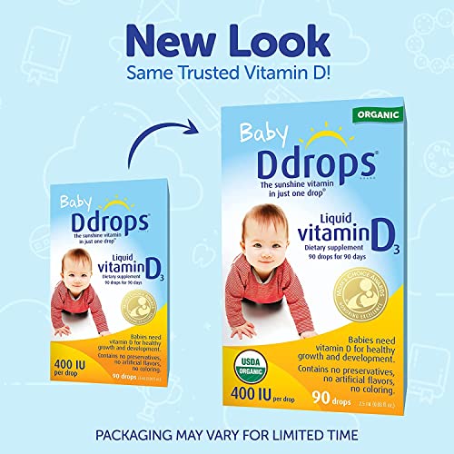 Ddrops Organic Baby 400 IU 90 Drops – Daily Vitamin D Liquid for Infants. Supports Teeth & Bone Health. No Preservatives, No Sugar, Non-GMO, Allergy-Friendly – Pack of 2