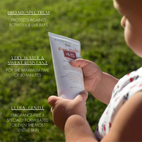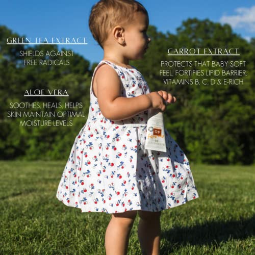 Hampton Sun All Natural SPF 50 Mineral Lotion for Baby, 3.2 oz. – Ultra-Gentle Broad Spectrum Physical Sunscreen, Nourishing + Moisturizing Antioxidant-Rich Formula with Carrot, Green Tea + Aloe Vera