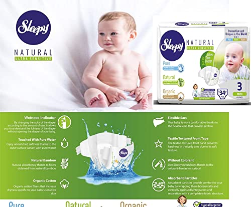 Specification: SOHO | Sleepy Natural Baby Diapers, Made from Organic Cotton and Bamboo Extract, Ultimate Comfort and Dryness, Disposable Diapers Snuggle Diaper (Size 3)