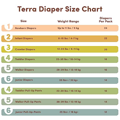 Terra Size 3 Diapers: 85% Plant-Based Diapers, Ultra-Soft & Chemical-Free for Sensitive Skin, Superior Absorbency for Day or Nighttime Diapers, Designed for Babies 13-24 Pounds, 20 Count