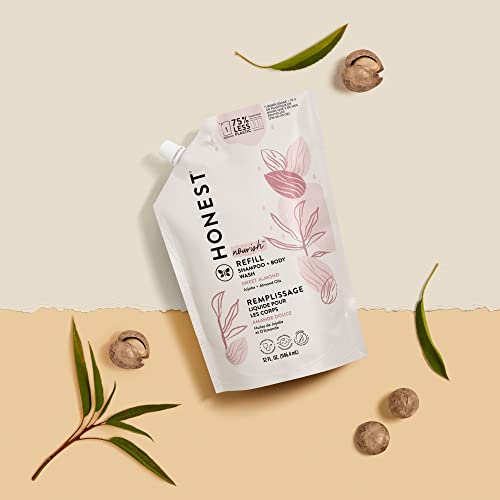 The Honest Company 2-in-1 Cleansing Shampoo + Body Wash Refill Pouch | Gentle for Baby | Naturally Derived, Tear-free, Hypoallergenic | Sweet Almond Nourish, 32 fl oz