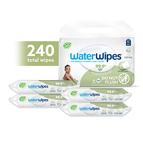 WaterWipes Plastic-Free Textured Clean, Toddler & Baby Wipes, 99.9% Water Based Wipes, Unscented & Hypoallergenic for Sensitive Skin, 240 Count (4 packs), Packaging May Vary