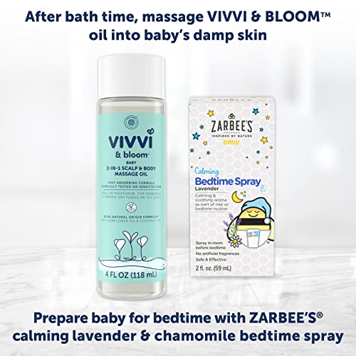 Zarbee’s Baby Sleep Spray; Calming Bedtime Spray with Natural Lavender and Chamomile; 2oz Bottle with Vivvi & Bloom Gentle 2-in-1 Baby Scalp & Body Massage Oil, Fast Absorbing Formula, 4 fl. Oz